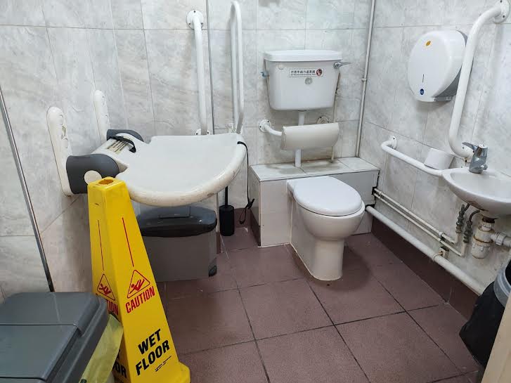 This particular evening, I went with some friends from Hong Kong and among us, we were 3 wheelchair users: 2 power wheelchairs and one self propelling, a total of 7 of us . The biggish round tables accommodated us without difficulty and the lazy Susan in the middle of the table moved the dishes within our reach. Tea was served immediately. Waiters were attentive – how much of that was a result of us addressing them in Cantonese? We do not know.
